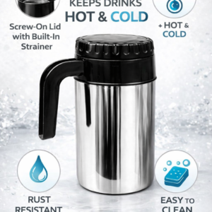 Premium stainless steel insulated jug with sturdy handle and secure lid—perfect for keeping beverages hot or cold for hours.