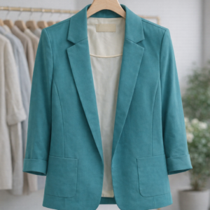 Upgrade your wardrobe with this elegant teal women’s blazer designed for a sleek and versatile look. Featuring a refined tailored silhouette, this blazer offers a flattering fit that complements both casual and semi-formal outfits. The minimalist design, smooth finish, and comfortable structure make it ideal for office wear, meetings, or stylish daily outfits. Pair it effortlessly with jeans, trousers, or dresses for a polished appearance. Crafted from soft, breathable fabric, it ensures comfort throughout the day while maintaining a sharp, sophisticated style.
