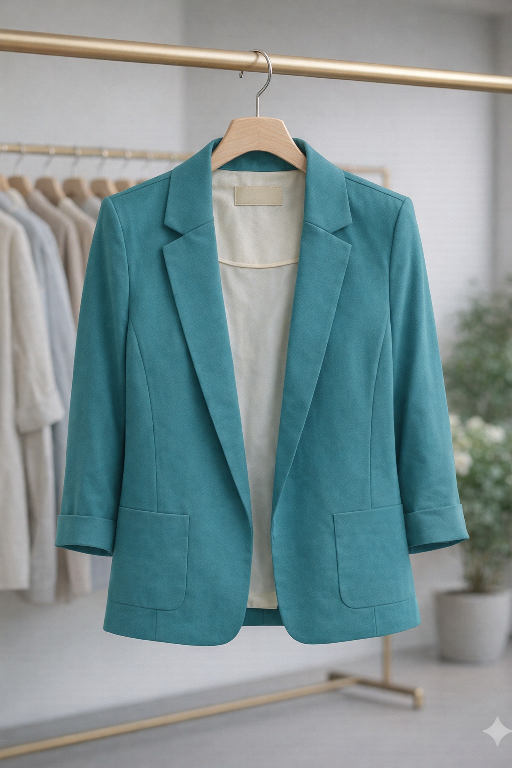 A modern teal women’s blazer with a clean tailored fit, perfect for smart casual and everyday wear.